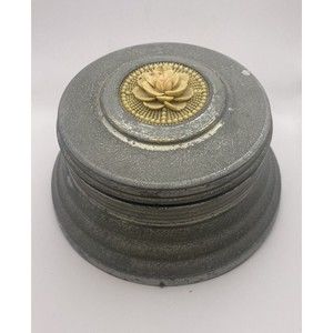 Vintage Music Box Aluminum Metal Powder Trinket Vanity Floral Top Used
