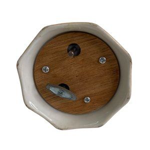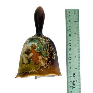 painting on it. Brown with gold trim. The log in the image is signed F Bouchard 1859 I have tried to show this detail in a close-up photo. The music plays but slowly and I am unable to recognize the tune. The bell stands 6" tall x 3.25" wide at the base. It is in excellent vintage condition with no cracks or chips. There is some light paint wear particularly around the bottom edge of the base.