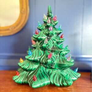 Vintage Musical Ceramic Light-Up Christmas Tree Retro Green Holiday Decor X-mas
