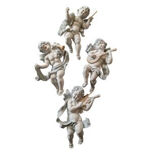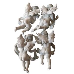 Vintage Musical Cherubs Made in Italy Plastic Wall Ornaments Set of 4