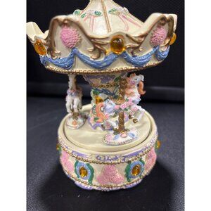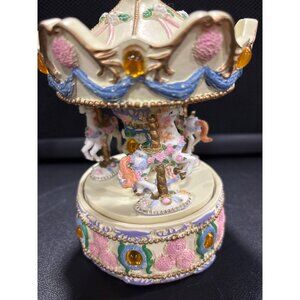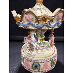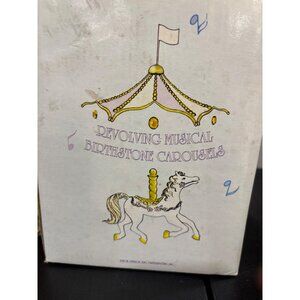 Vintage Musical Revolving Birthstone Carousel With Horses & Gem Accents November