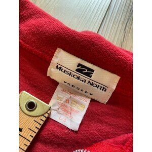 Vintage Muskoka North Varsity Chicago Destination Vacation Pullover Sweatshirt Large Red Made in Canada Embroidered