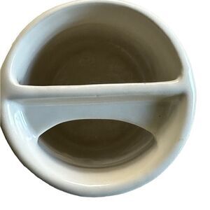 Has a spot to sip from and one to put your stashe in 🤣 Bone white black lettering. 5 inches tall