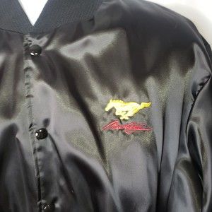 Galloping Mustang Embroidered in Gold and Mustang Script in Red on Left Front and Back