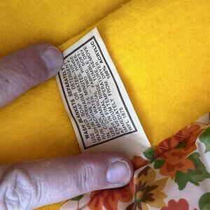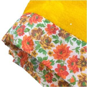 Vintage Mustard Gold Yellow Floral Satin Trim Acrylic Blanket TWIN Full 72x90"