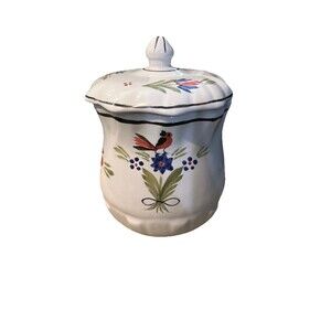 Vintage Mustard Pot Signed Henriot Quimper French Country Lidded Floral