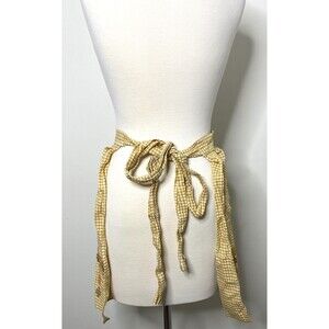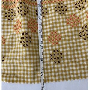 Charming vintage mustard yellow cotton apron with long adjustable straps and intricate embroidered stitch accents. Perfect for baking, cooking, or adding farmhouse flair to your kitchen collection. Soft breathable fabric with nostalgic retro vibes.