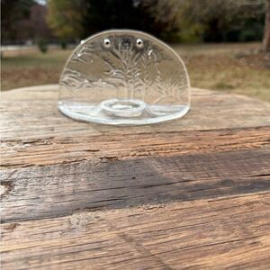 Vintage Muurla Finland Glass Tea Light Holder. Series Romantica Designed by Kauko Mäkinen. Textured Glass. Landscape. Marked.