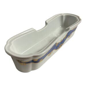 Vintage My Life Azabu Tatsumi Japanese Porcelain Chopstick / Utensil Rest Blue Gold Scroll