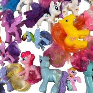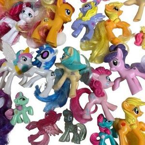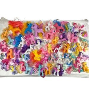 This lot of 50+ vintage My Little Pony figures includes a mix of horses, unicorns, and ponies from the popular franchise by Hasbro. Each figure is made of vinyl or plastic and features a multicolor design. This collection is perfect for fans of My Little Pony looking to add some nostalgia to their collection with original action figures from the early days of the series.