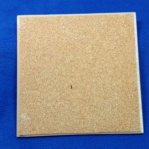 This decorative tile has a cork back and is meant to sit on a counter or table.