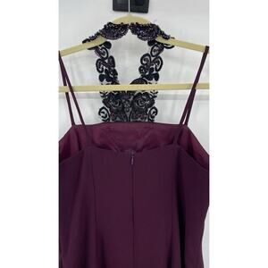 Vintage Myles Studio Sheath Dress Women's 10 Burgundy Embellished Halter Neck.