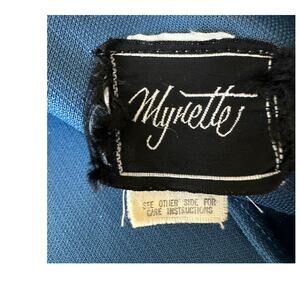 Vintage Mynette Dress Blue 60s Midi Length Short Sleeves Women's Size Large