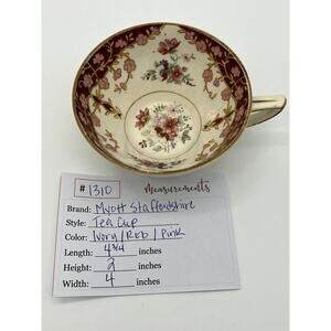Vintage Myott Staffordshire England Ivory w/ Pink & Red Flowers Gold Tea Cup