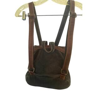 This purchase is unusual with the leather and calf fur on each side. You may carry it as a regular purse or make it a backpack. It is in excellent condition, but is used.
