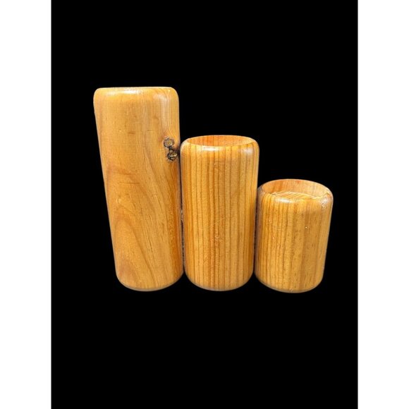 Vintage Minimalist Myrtle-wood Mid-Century 3 Tapered Candle Holder Hand Turned Oregon? MCM - votive candles.
