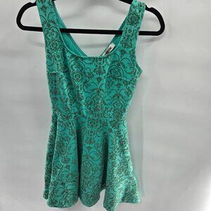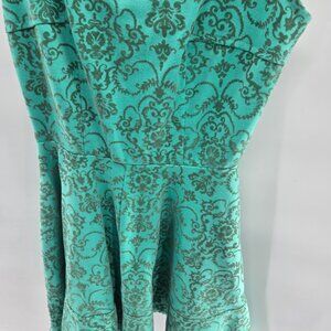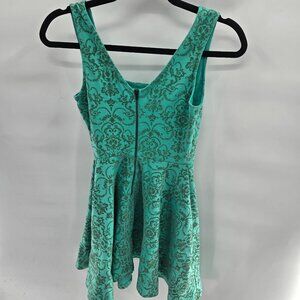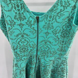 Vintage Mystic Teal Brown Velvet Burnout Fit Flare Y2k Mini Dress Small