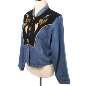 Vintage NANCY BOLEN Denim Embellished Western Denim Jacket Size 14
