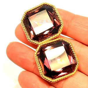Vintage Signed NAPIER Deep Gem Purple Square Faceted Rhinestone Clip-on Earrings Large