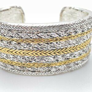 Vintage NAPIER Large Wide Cuff Silver and Gold toned Bracelet
