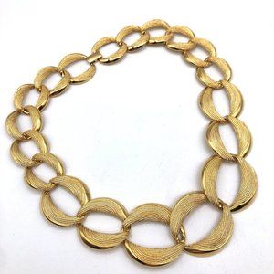 Vintage Signed NAPIER Gold Tone Chunky Textured Oval Link Statement Necklace 19"