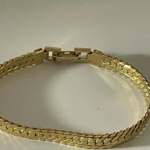 Vintage NAPIER PAT 1980's gold Tone Herringbone Bracelet 7.0"