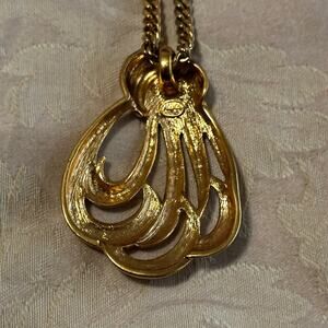 Vintage NAPIER Signed Large Gold Tone Pendant Necklace