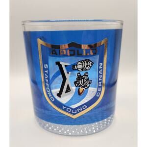 Each lowball whiskey glass has a unique transparent image on back and a commemorative Apollo image on the front. Collection honors the first ten manned Apollo missions, each measuring approx. 3.5˝ H x 3.25˝ W, featuring translucent blue and gold designs with each mission insignia.