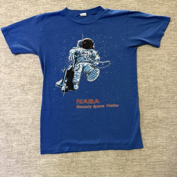 Vintage NASA Kennedy Space Center Rocket Ship T Shirt Man Earth Single Stitch