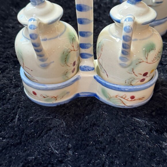 Includes salt & pepper shakers, creamer, and sugar bowl. Functional yet decorative kitchenware.