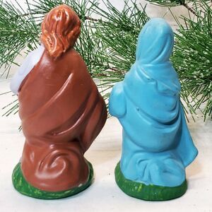 Vintage NATIVITY Manger Creche Figures Paper Mache Composite Joseph and Mary Japan. Condition is "Used" and in wonderful condition! It looks as though Joseph has a tiny ding in his chin...probably happened in a fight! Lol. Marked Japan on the bottoms.