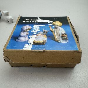 Vintage NATIVITY SET Children's 4 Piece Ceramic CHRISTMAS DARLING Baby Jesus