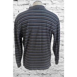Vintage NAUTICA 100% Cotton Striped Gray Long Sleeve Polo Shirt LARGE