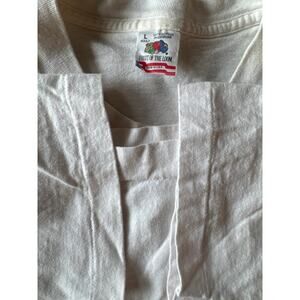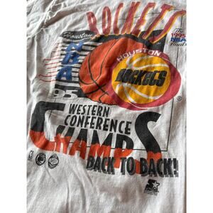 Vintage NBA Houston Rockets ‘95 Western Conference Champs USA Made Single Stitch L White Fruit of the Loom Tee. Small spot on back right shoulder otherwise in excellent, near deadstock vintage condition!