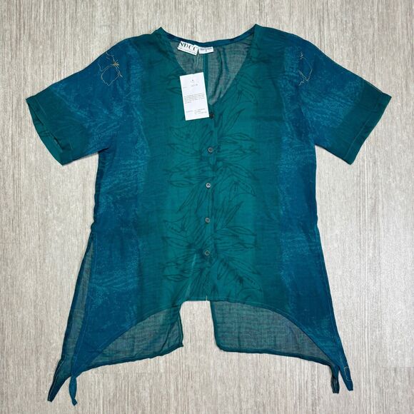 Vintage NDCC Norma Dani Clothing Sheer Button Up Blue Floral Shirt S NEW Boho