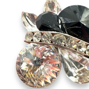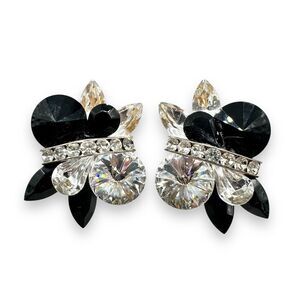 vintage earrings, rhinestone jewelry, statement earrings, black crystal, Nelly earrings, midcentury jewelry, clip-on earrings, cocktail jewelry, old hollywood glam, sparkle earrings, designer vintage, art deco style, retro chic, cluster earrings, collectible jewelry, 50s glam, costume jewelry, formal accessories, black and clear rhinestones, elegant style