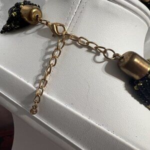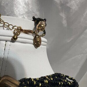 Vintage NENA Multi-strand Black & Gold Seed Bead Necklace, Bracelet & Earrings
