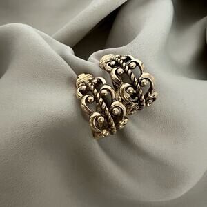 Avon 1977 French Filigree stunning clip on hoop earrings antiqued gold tone metal finish.