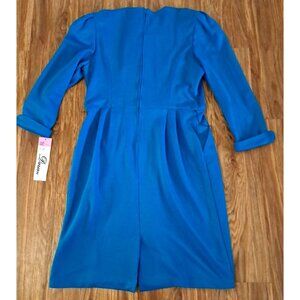 Vintage NEW Darian Dress TEAL Blue Knit 1980s Career Gold Button Pockets 18