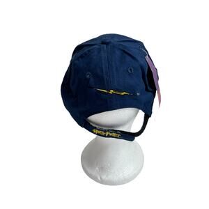 Vintage New-with-tags Harry Potter HP Blue Baseball Cap/Hat. Adjustable with a hook-and-loop closure. Unisex one size. Dated: 2001. Navy Blue. 100% cotton. Darkened spots on the brim from storage and handling (see photos). In otherwise new condition.