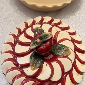 Vintage NEW IN BOX Ceramic 10.5" Country Apple Pie Dish with Cover Lid