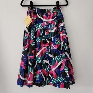 Vintage NEW Jessica Scott floral blue tiered skirt elastic waist womens size 14
