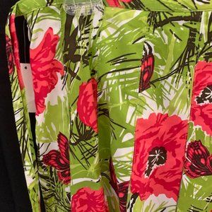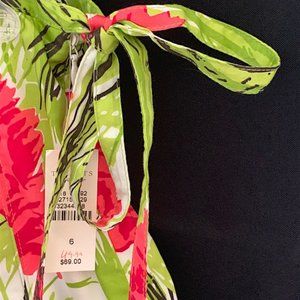A NEW Never Worn 1990’s discontinued classic TALBOTS skirt with TAG Attached. This is a Size 6, light and breezy skirt in the most beautiful poppy floral with butterflies batik-style pattern in vivid shades of green & rose with accents of black against a white background. Gathered pleats from the waist open to a full silhouette hitting at the knee. Zipper closure with ties at side. 100% cotton. Approx Measures: Waist 15”, Length 25.5”. *Due to the nature of various fabrics & lighting, the colors may not show as completely true in the photographs. See ALL Photos as they are part of the description. Smoke & Odor Free.