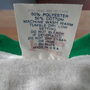 50/50 cotton/polyester. New old stock, never worn. Deadstock shirts.