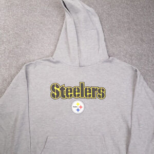 Vintage NFL Pittsburgh Stealers Medium Gray Long Sleeve Pockets Hoodie