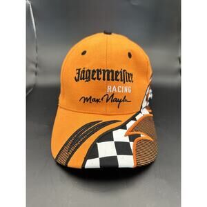 Vintage NHRA Jagermeister Max Nayla Baseball Hat M/L Checkered Flag Orange