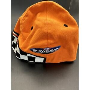 Get your hands on this vintage NHRA Jagermeister Max Nayla baseball cap. The checkered flag orange color adds a touch of style to any outfit. Made of breathable cotton fabric, this M/L size cap is perfect for any man who wants to show off their love for NHRA. The cap features the Powerade NHRA logo and is not signed or personalized. Don't miss out on this opportunity to add a piece of NHRA history to your collection.
