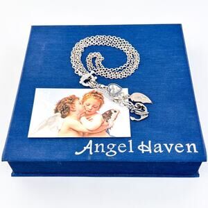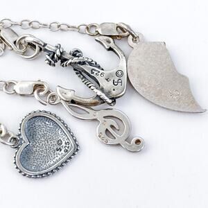 Vintage NIB Italy Sterling Silver 925 Charm Necklace Anchor Heart Moon 17”