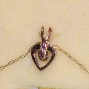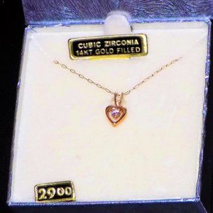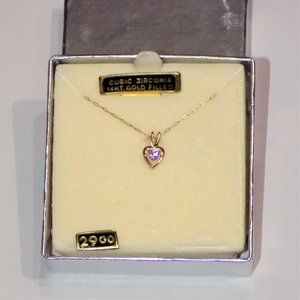 Vintage NIB NWT Signed PPC 14K GF CZ Dainty Heart Gold Pendant Necklace