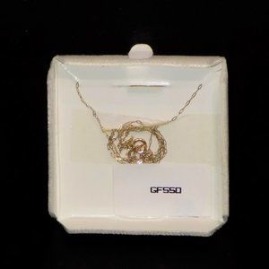 Stamp on back of pendant reads "PPC 14K GF". PPC stands for Princess Pride Creations. 14K gold filled. 11mm x 6mm heart with 2.5mm cubic zirconia. Very delicate gold chain has never been removed from the tie & tape on the back of the display, but my guess is the clasp is also stamped 14K GF, or something similar. Label on back of display reads "GF550". Comes in original silver foil box, complete with 'Cubic Zirconia 14K Gold Filled" and $29.00 foil tabs.